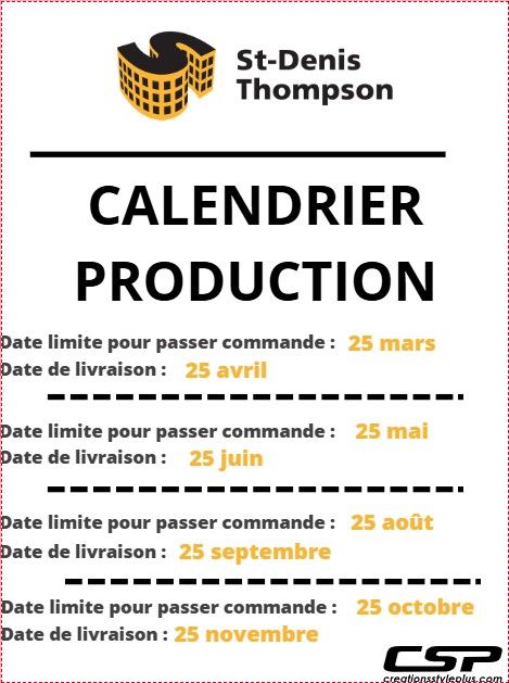 **CES DATES SONT APPROXIMATIVES, MERCI DE PRÉVOIR +/- 5 JOURS OUVRABLES POUR LES LIVRAISONS DES COMMANDES. merci